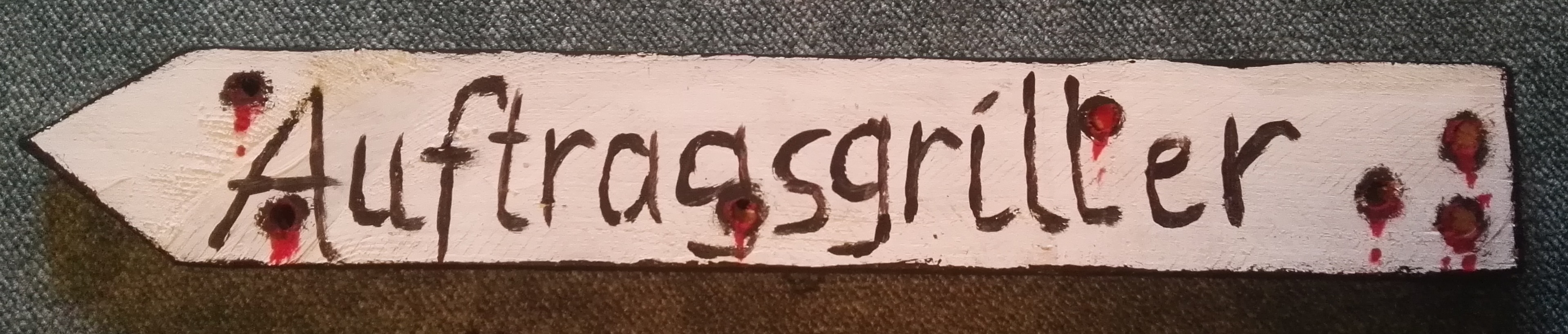 Das Stück Holz wurde so zugesägt das eine Spitze hat und nach rechts zeigt. Es wurden Löcher mit der Stärke 8 mm gebohrt um die Einschusslöcher darzustellen. Danach wurde das Stück Holz weiß grundiert und der Rand wird schwarz angemalt. Die Einschusslöcher haben wir schwarz angemalt und die Blutflecken kamen danach um den Effekt zu erhalten, das das Blut aus den Löchern läuft.