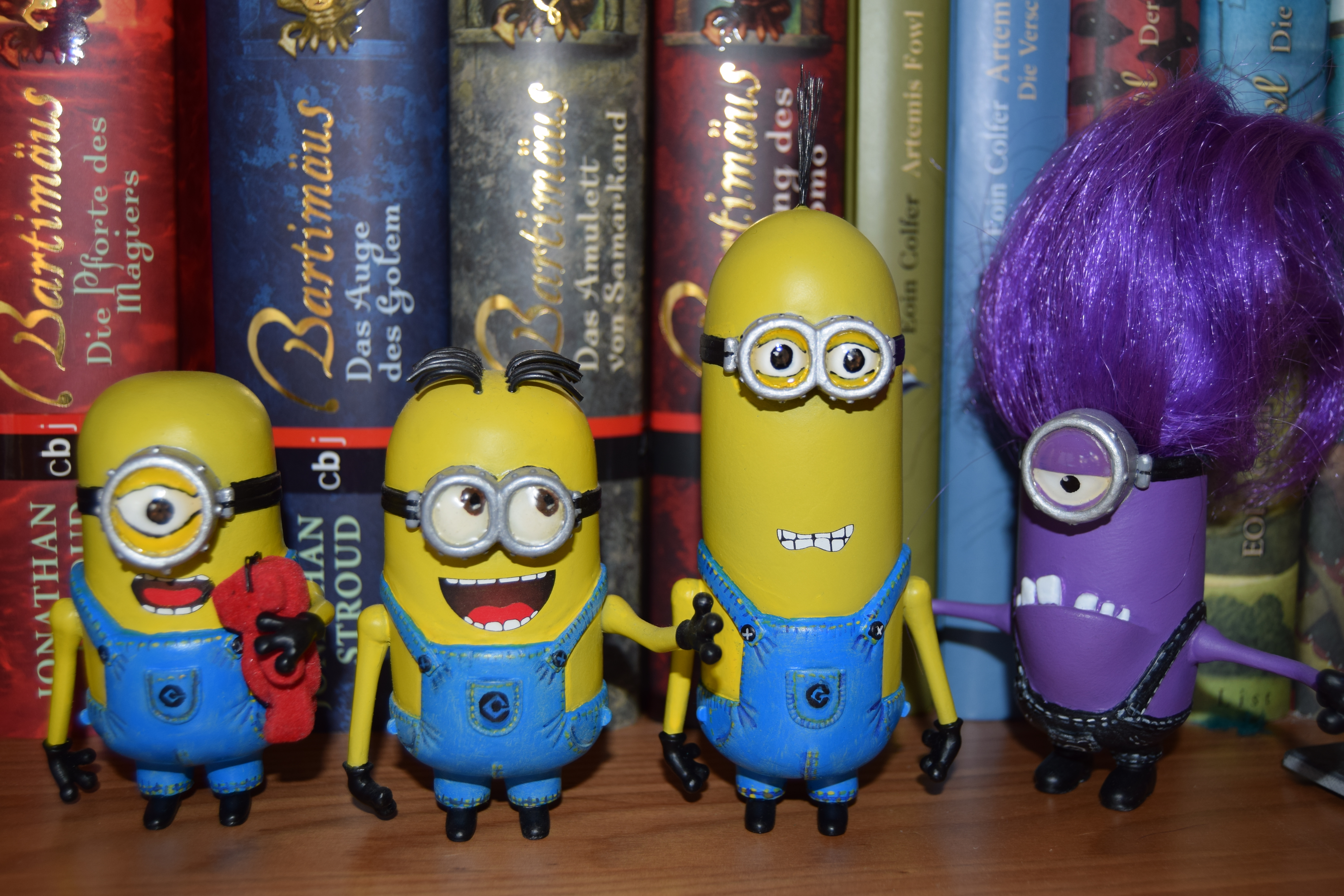 Beim Evil Minion war das größte Problem die Haare zu befestigen. Ich habe diverse Kleber an einer Haarprobe ausprobiert und der einzige der wirklich hielt war der Sekundenkleber. Es trat dabei auch kein weißer Schleier durch ausdünsten des Klebers auf.