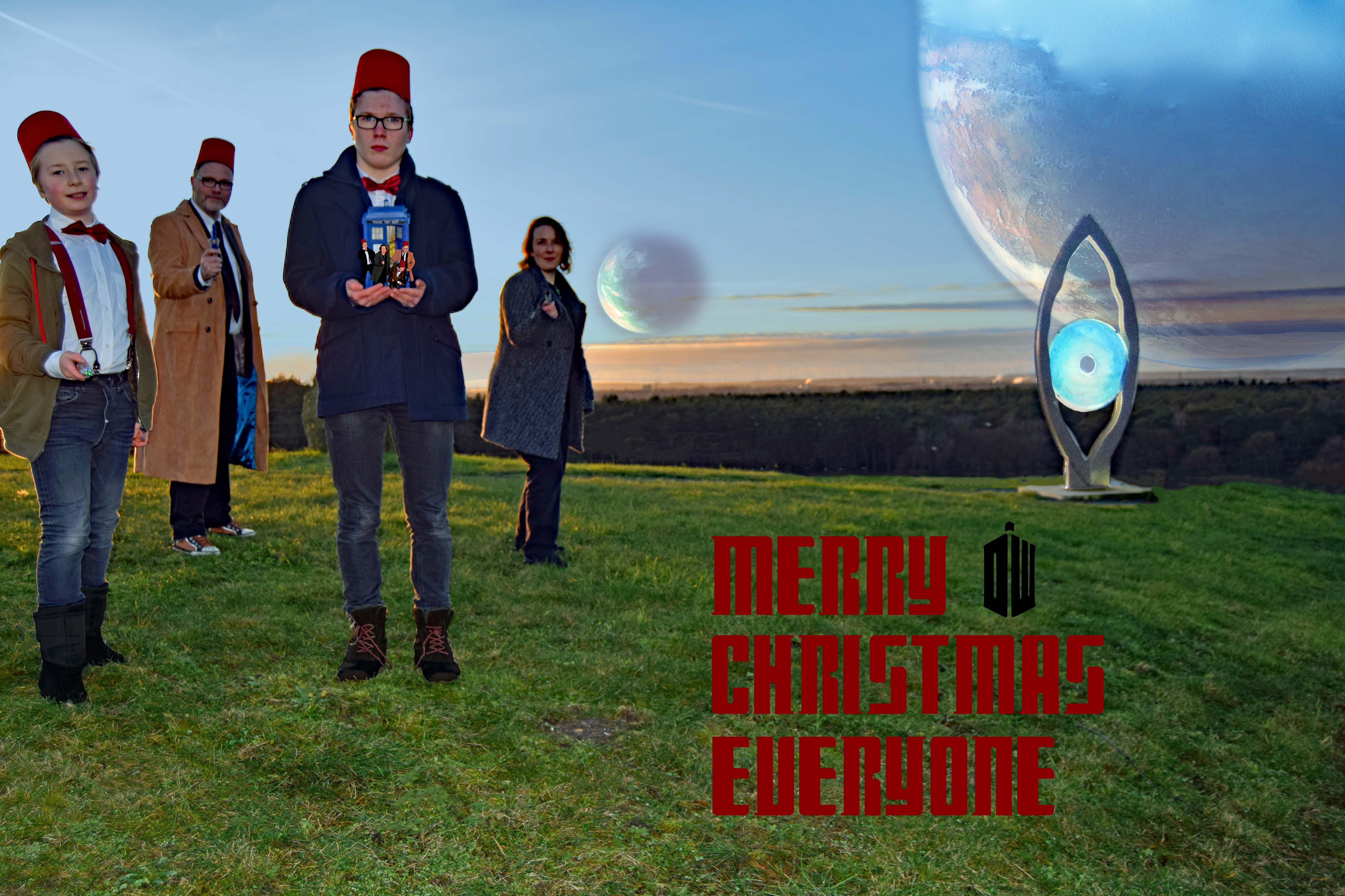 Im nächsten Schritt mussten die Kostüme und die Requisiten besorgt, bzw. gebaut werden. Zwischen durch habe ich nach einer guten Location gesucht und zum Glück gefunden. Die Kräher Höhe hat eine wunderschöne Skulpur, welche ich durch zusätzliches Licht und einer axtra Nachtaufnahme aufgebessert habe. Die anderen Aufnahmen erfolgen zeitlich in der Blauen Stude. Wodurch wir diesen schönen Himmel hatten. Da wir zudem im Foto noch vor der TARDIS stehen, muste ein zusatz Foto her, in dem wir in einer Action Pose zu sehen sind.