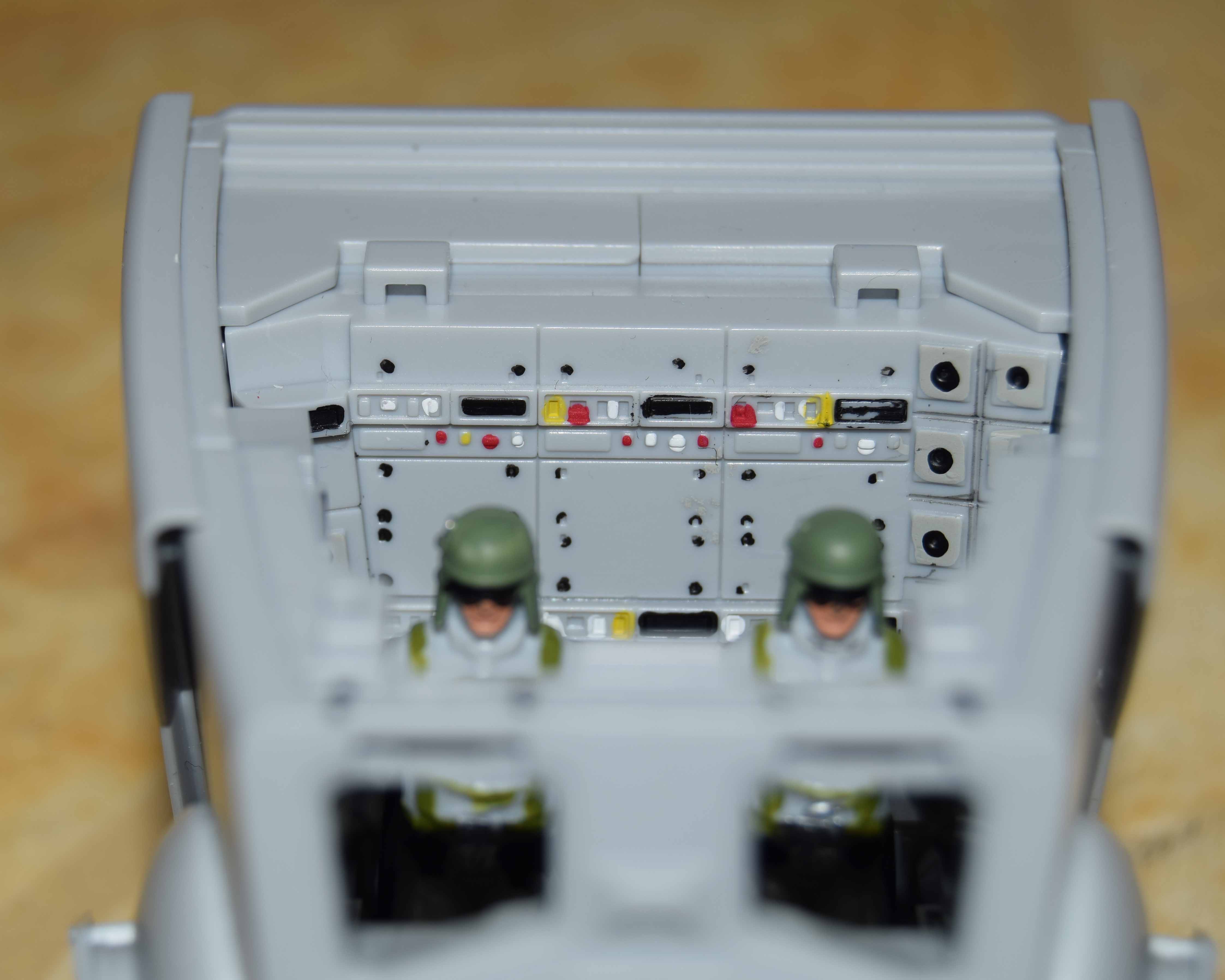 Das Modell ist von den Details der absolute Wahnsinn. Ich habe die Bauteile nicht grundiert. Dafür habe ich die Inneneinrichtung bemalt und die Figuren. Die Abnutzung habe ich durch Hervorheben der Schrauben mit schwarzer Farbe. Für die Base ich sandige Spachtelmasse genommen und dies mit der Farbe Braun vermischt. Danach habe ich die gefärbte Spachtelmasse auf die Base aufgetragen und aushärten lassen. Leim auf ein paar Stellen aufgetragen und Modellbau Graus aufgeblasen. Die Fotos zeigen die Bemalung von innen.