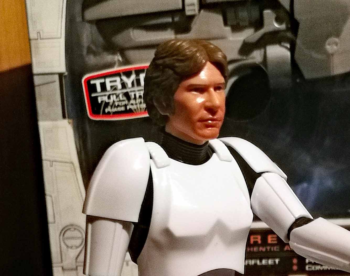 Han Solo im Stormtrooper Kostüm ist einer der Modelle, welche ich mir schon seit Jahren gewünscht habe. Jetzt ist er neben Luke zu haben. Das Gesicht ist schon von Bandai vor bemalt worden. Jetzt muss nur noch der Plastik Look der Haare weg. Mehr würde ich hier jetzt nichts machen. Für später könnte ich mir noch eine schöne Base in einem Imperialen-Kontrollraum vorstellen. Das wird dann allerdings ein neues Projekt.