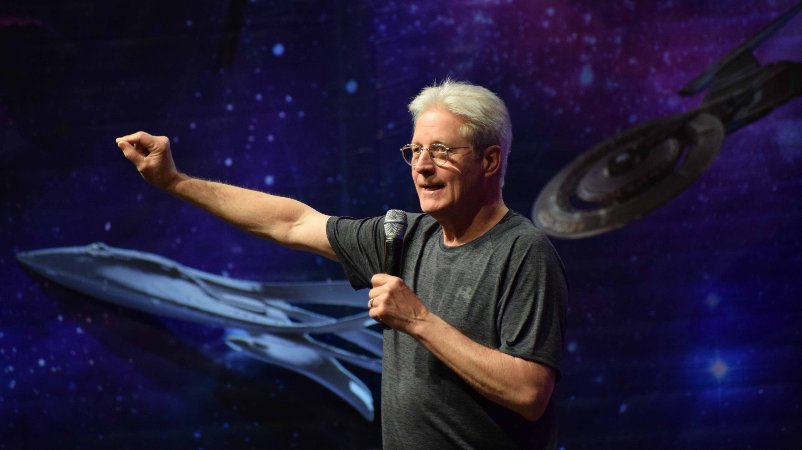 Ein Mann mit Ausstrahlung, das konnte man wieder im ganzen Saal spüren. Natürlich gingen die ersten Fragen in Richtung Babylon 5 und deren Cast. Leider sind schon viele der Schauspieler aus der Serie verstorben und auch dieses Mal musste er sich der Fragen stellen, wie er damit umgeht. Es ist schon eine Hürde für ihn sich an die schöne Zeit zu erinnern, ohne dabei zu trauern, aus diesem Grund kann er sich viele Episoden mit besonderen Erinnerungen nicht mehr ansehen.
